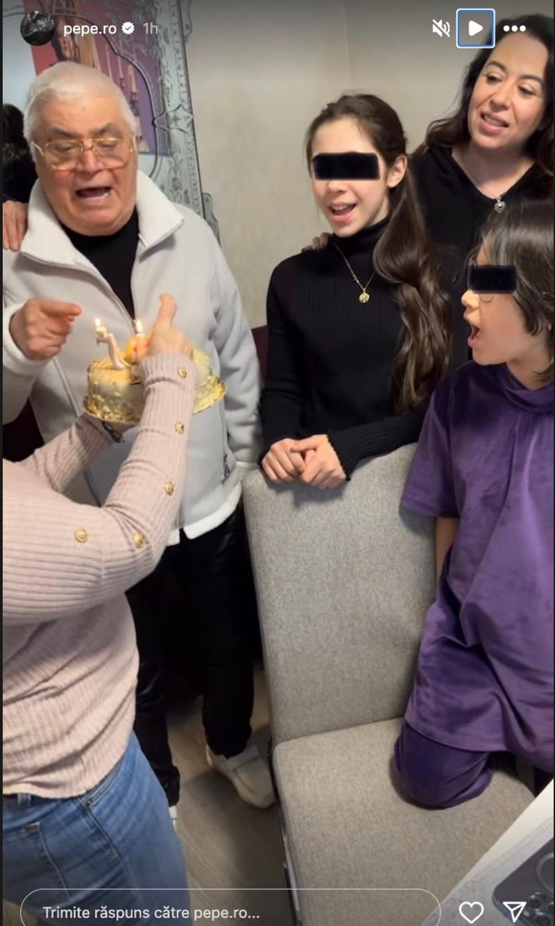 Pepe a surprins momentele emoționante când i-au cântat tatălui său „La mulți ani!”, la mica petrecere fiind prezenți de la mic la mare, de unde nu au putut lipsi Yasmine Ody, fiicele artistului și nici Oana Roman, care a luat și a ea parte la momentul emoționant din familia cântărețului. Cu câteva ore în urmă, fiica lui Petre Roman a scris în mediul online un mesaj pentru tatăl lui Pepe, alături de care a atașat și două fotografii, așa cum a procedat și cântărețul.