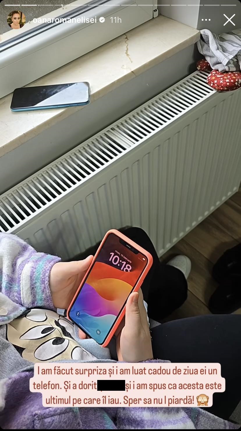 „I-am făcut surpriză și i-am luat cadou de ziua ei un telefon. Și-a dorit(...) și i-am spus că acesta este ultimul pe care îl iau. Sper să nu-l piardă!”, a scris Oana Roman pe rețelele de socializare.