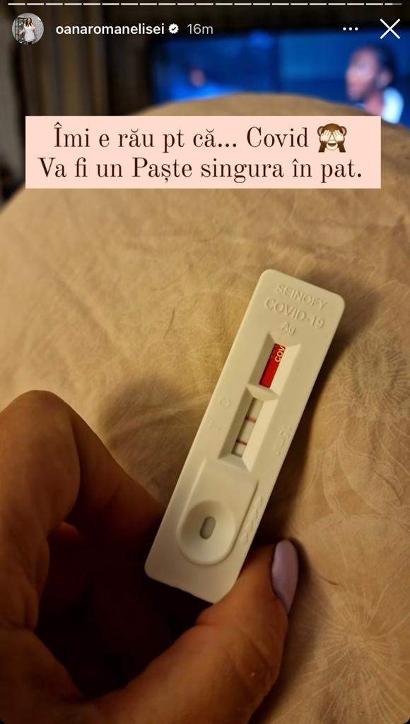 „Îmi e rău pentru că…Covid. Va fi un Paște singură la pat.”, a scris Oana Roman pe contul ei personal de Instagram.