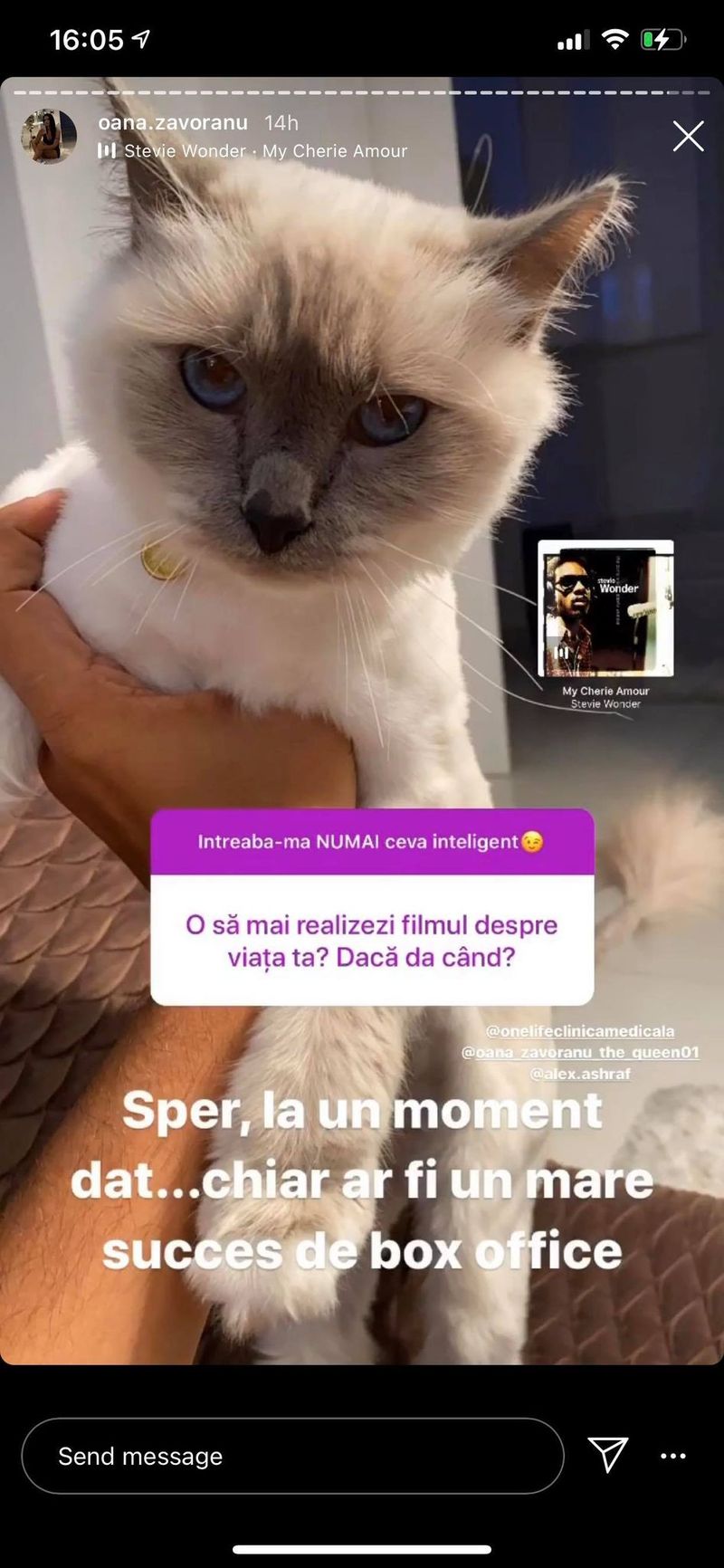 Pe lângă mesajul adresat influencerilor, Oana Zăvoranu a mai postat o bombă pe internet! Întrebată de un fan când și dacă va realiza un film despre viața ei, bruneta a dezvăluit că speră și că va fi, cu siguranță, un mare succes de box office!