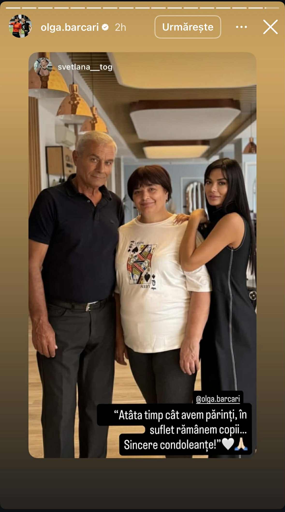 „Ai fost stâlpul meu de sprijin, tată. Azi ai plecat dintre noi, dar rămâi pentru totdeauna în sufletul meu. Te iubesc!”, a scris Olga Barcari, pe Instagram.