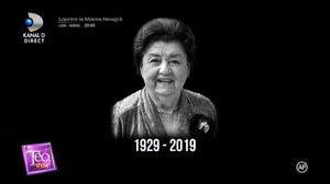 Omagiu emoționant pentru Tamara Buciuceanu, astăzi, la Teo Show.