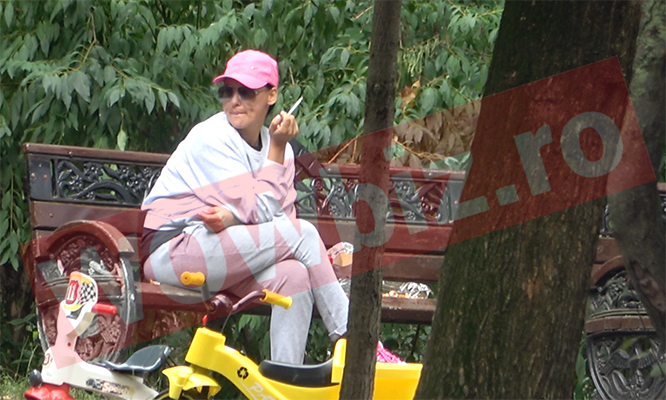 Mai apoi, și-a scos și pachetul de țigări și s-a bucurat de „una mică” în timp ce stătea de vorbă cu cealaltă mămică de pe bancă. Într-o mâncă cu țigara și într-o mână cu băutura acidulată, Lavinia Pârva l-a urmărit atent pe micuț, unde se duce și ce face tocmai pentru a fi sigură că nu i se întâmplă nimic.