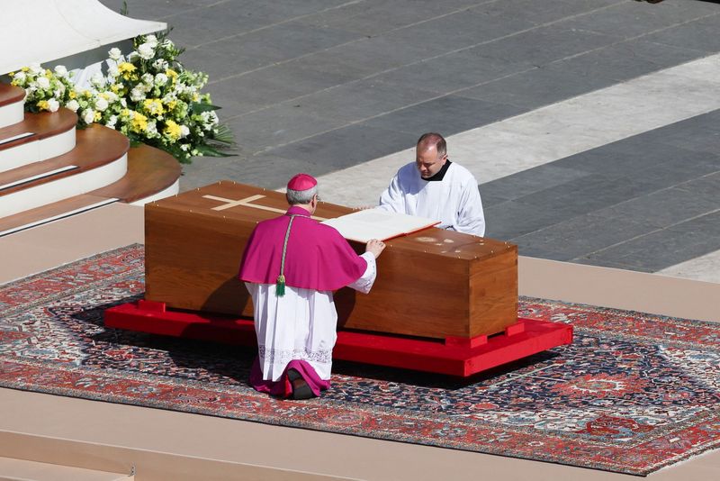 Secretarul Don Juan Cruz Villalon, Don Manuel Pellizzon și Don Fabio Salerno, dar și laicii care i-au fost mereu apropiați Papei: asistenta Massimiliano Strappetti și consilierii de cameră Piergiorgio Zanetti și Daniele Cherubini, au sărutat sicriul înainte de a fi scos în piaţa Sfântul Petru.