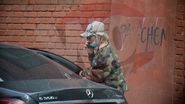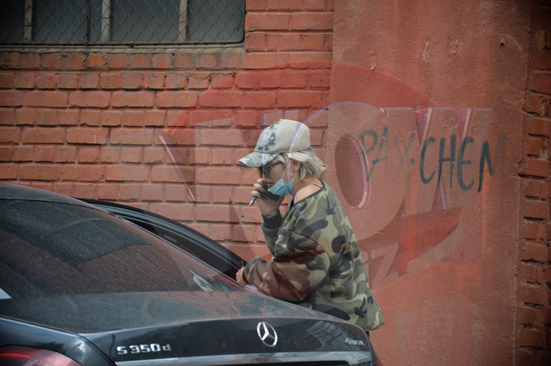 Îmbrăcată într-o pereche de blugi mulați și un pulover cu imprimeu army, Marga s-a ascuns în spatele ochelarilor de soare și a măștii de protecție și a vorbit în permanență la telefon.