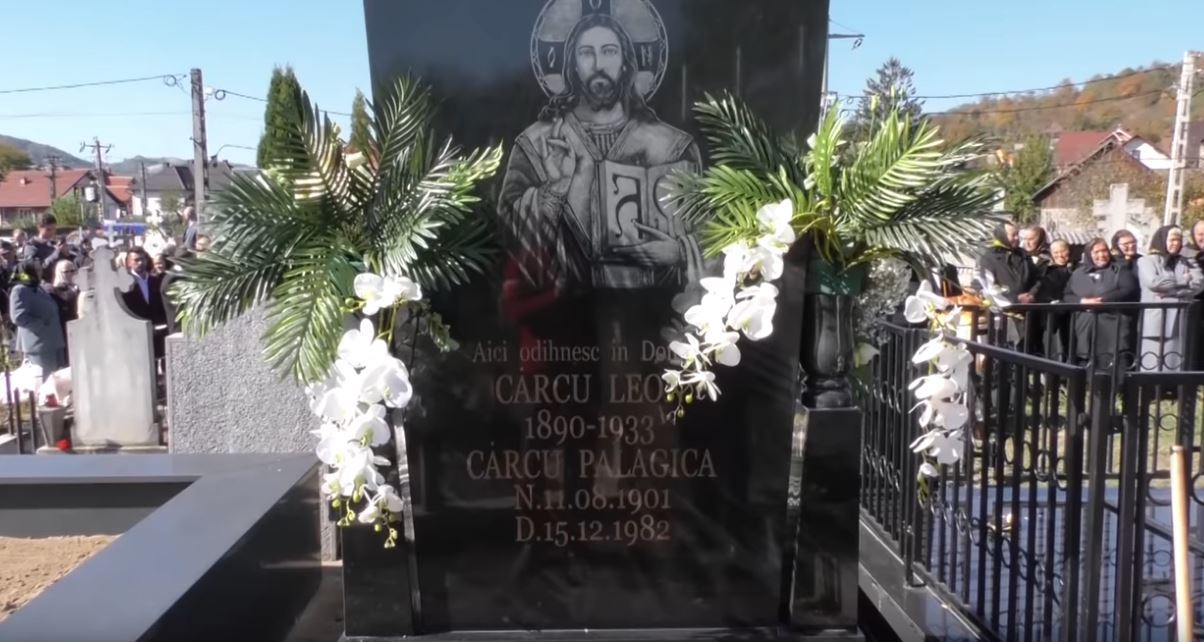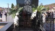 Cinci preoţi au oficiat slujba de sfinţire a crucii ridicate din marmură neagră, iar la eveniment au participat câteva sute de persoane, alături de familie.