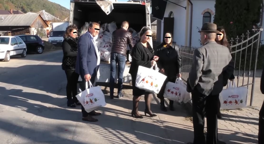 Nimeni nu a plecat cu mâna goală, mai ales că familia Cârcu a organizat ”pomana” direct dintr-un camion plin cu sacoşe burduşite având însemnele unui supermarket local.
