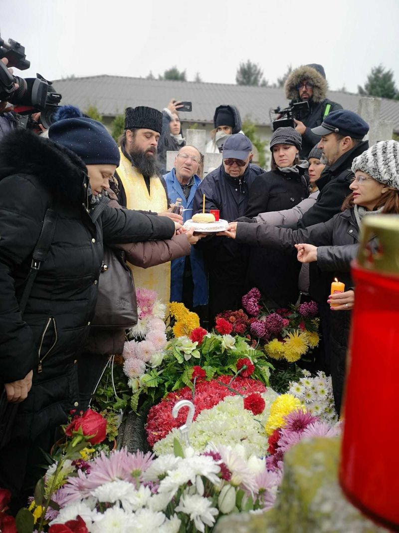 După sfinţirea pachetelor şi o scurtă slujbă, oamenii au ajuns la mormântul,, care era deja plin de flori.
