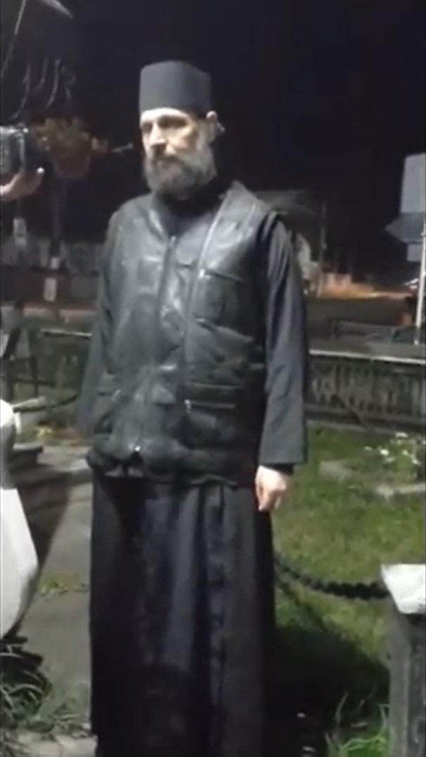 Părintele Calistrat a fost filmat nu cu mult timp în urmă, în timp ce lovea o femeie în curtea Mănăstirii Vlădiceni.