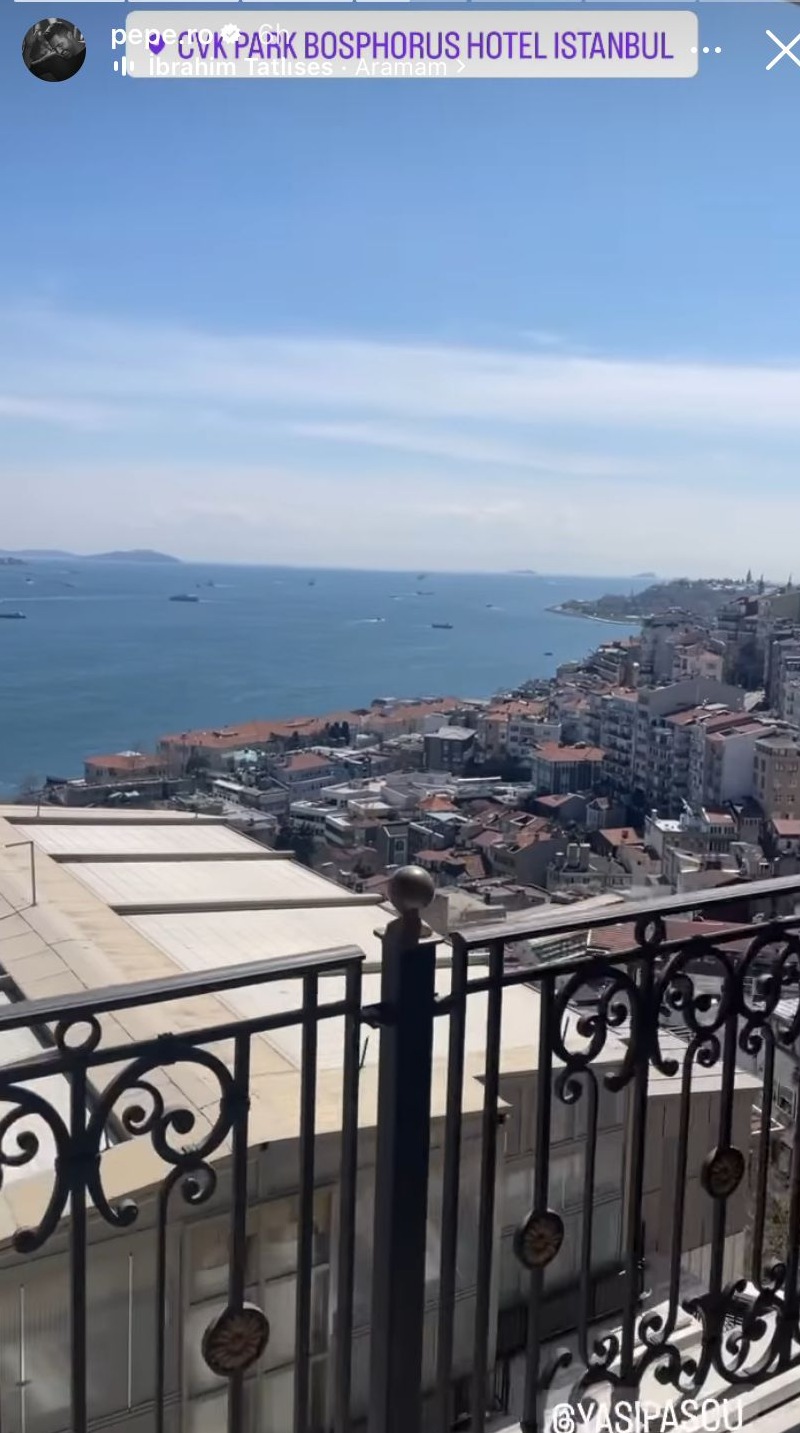 Cu doar câteva ore în urmă, Pepe a postat în mediul online imagini în care se afla alături de soția sa. Cei doi au fost luați direct de la aeroportul din Istanbul cu o mașină dotată cu fel și fel de gustări, de care tânăra mămică s-a bucurat în drum spre hotel. Buchetul de flori a fost nelipsit, iar camera de hotel s-a prezentat în aceeași notă, decorată într-un stil romantic, cu vedere la mare, totul de un confort sporit.