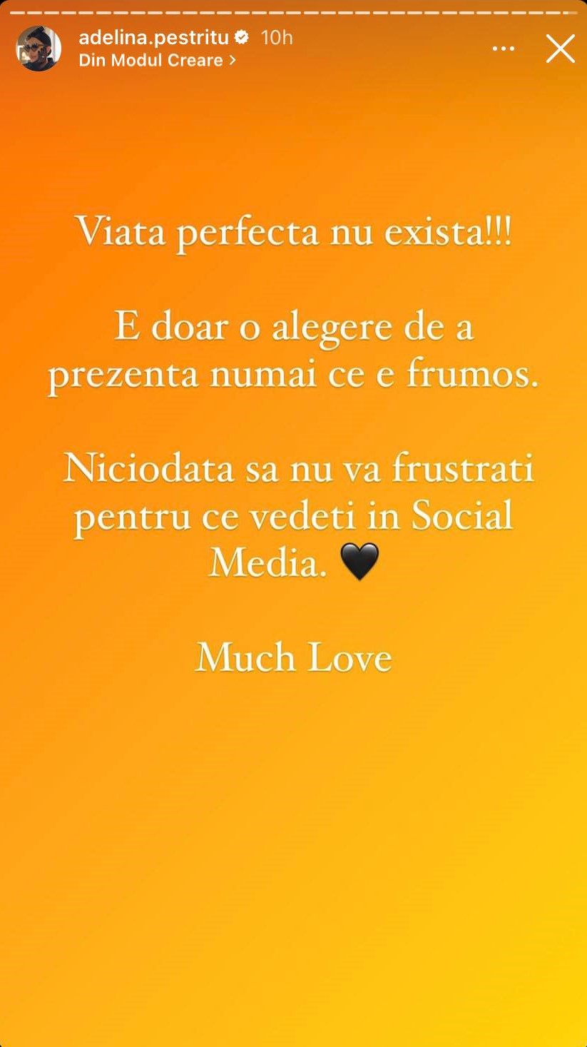 Ei bine, după ce a tot primit astfel de mesaje, Adelina Pestrițu a vrut să le transmită oamenilor care o urmăresc că nu tot ceea ce văd ei pe internet este și adevărat.