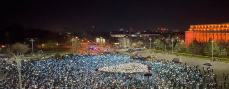 Peste 10.000 de oameni s-au adunat aseară în Piața Victoriei pentru a apăra valorile democrației, având în vedere situația politică de la noi din țară.