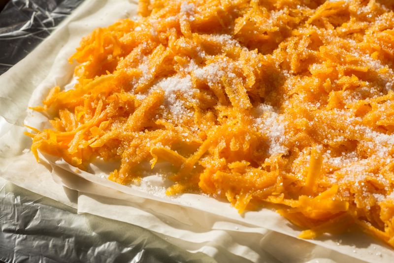 Pentru început pregătiți umplutura deoarece are nevoie de timp de răcire. Spălați, curățați și râdeți dovleacul.