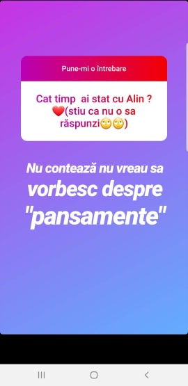 „Ce vă mai place să vă dați cu părerea în necunoștință de cauză.. Dacă făceam totul așa de fațadă, mai stăteam cu omul ăsta în aceeași casă? (…) Nu înțeleg de ce veniți la fiecare postare să spuneți aceleași lucruri. Ți-ai zis o datĂ părerea, gata, lasă-ne …