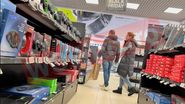Vedeta s-a oprit și la un magazin de încălțăminte, acolo unde a făcut cel puțin o achiziție, având în vedere dimensiunea plasei pe care o avea în mână.
