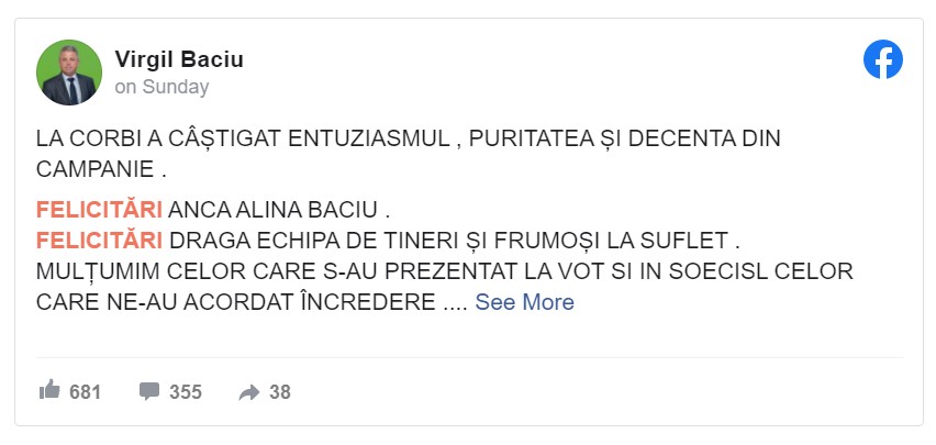 a fost mesajul postat de Virgil Baciu pe Facebook.