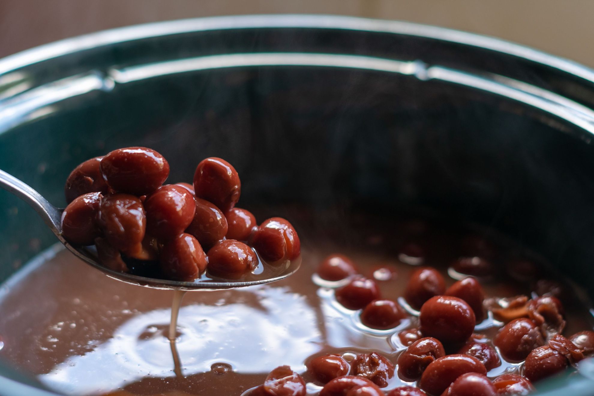 Topping-ul de ceapă se distribuie uniform peste amestecul de fasole!