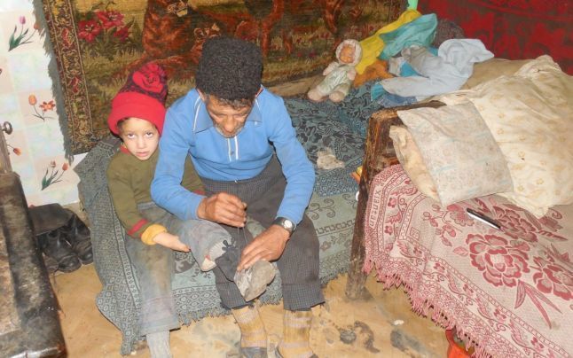 Bunicul grijuliu traieste impreuna cu cele trei fete intr-o camera extrem de modesta intr-o casa din chirpici care ar putea in orice clipa sa se darame.