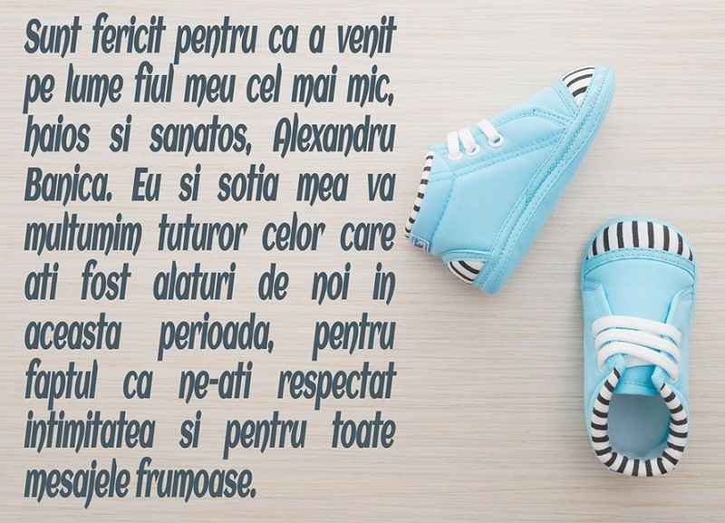 „Sunt fericit pentru că a venit pe lume fiul meu cel mic, haios şi sănătos, Alexandru Bănică. Eu şi soţia mea vă mulţumim tuturor celor care aţi fost alături de noi în această perioadă, pentrul faptul că ne-aţi respectat intimitatea şi pentru mesajele frumoase”, a scris Ştefan Bănică Jr. după nașterea celui de al treilea copil al său.