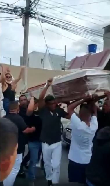 Secvențele postate de soția lui Mero arată cum prietenii acestuia plâng și continuă să danseze. La fel și femeia, care la un moment dat decide să urce pe sicriu și să danseze de mama focului. Ea a ridică capacul sicriului și începe să-și sărute soțul mort. Frumoasa femeie plânge și dansează…