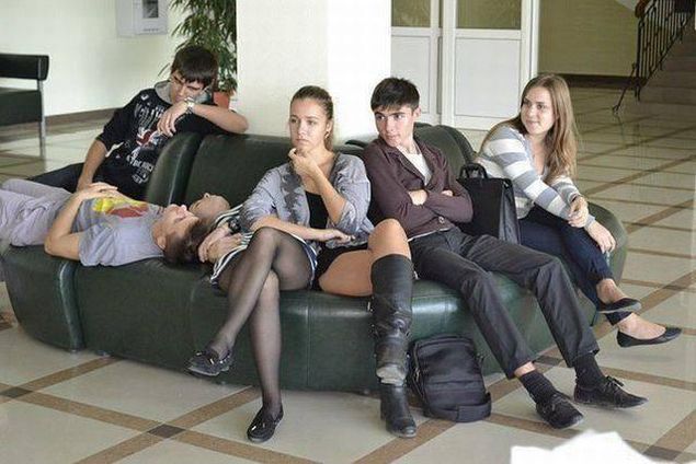 O studenta care astepta alaturi de prietenii ei sa intre in sala de examen a devenit vedeta in mediul online. De vina este o iluzie optica aparuta din greseala: langa ea sta o fata picior peste picior, intinsa pe spate. Pozitia celor doua da impresia ca fata in camasa gri sta cracanata la maximum si isi arata lenjeria si zona intima. Slava Domnului ca realitatea e alta...