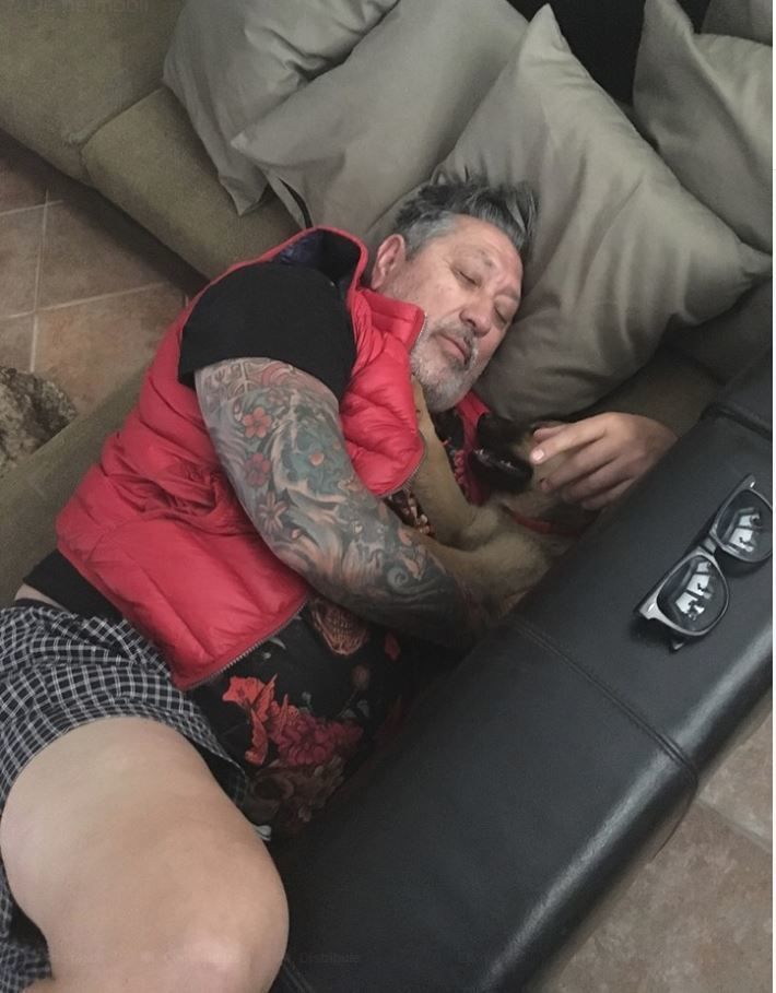 A adormit bustean pe canapea si si-a tinut toata noaptea in brate unul dintre cainii preferati.