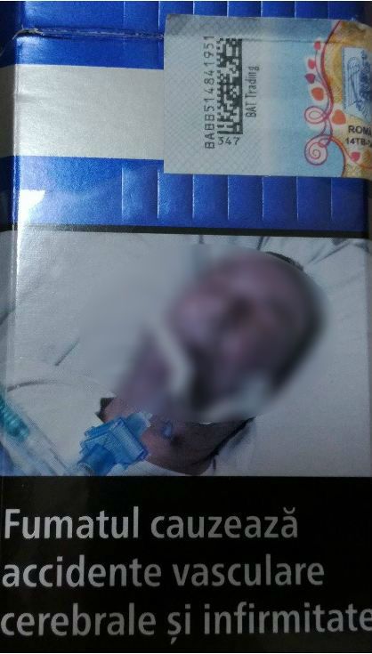 Poza unui barbat muribund, aflat pe patul de spital, apare pe pachetele din intreaga Europa. Fotografia este insotita si de mesajul "Fumatul cauzeaza accidente vasculare cerebrale si infirmitate”!