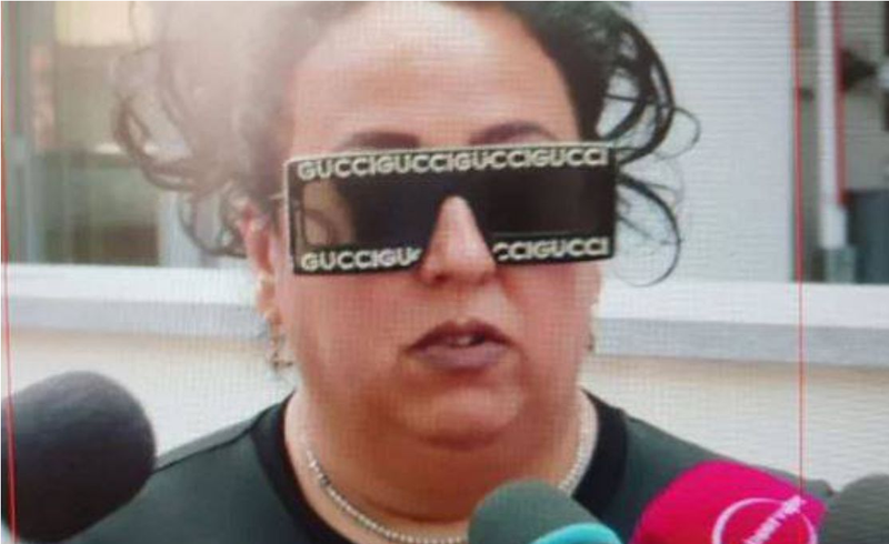 La ochii avocatei au stat o pereche de ochelari care aveau inscripționat de mai multe ori brandul de care aparțin, anume Gucci.