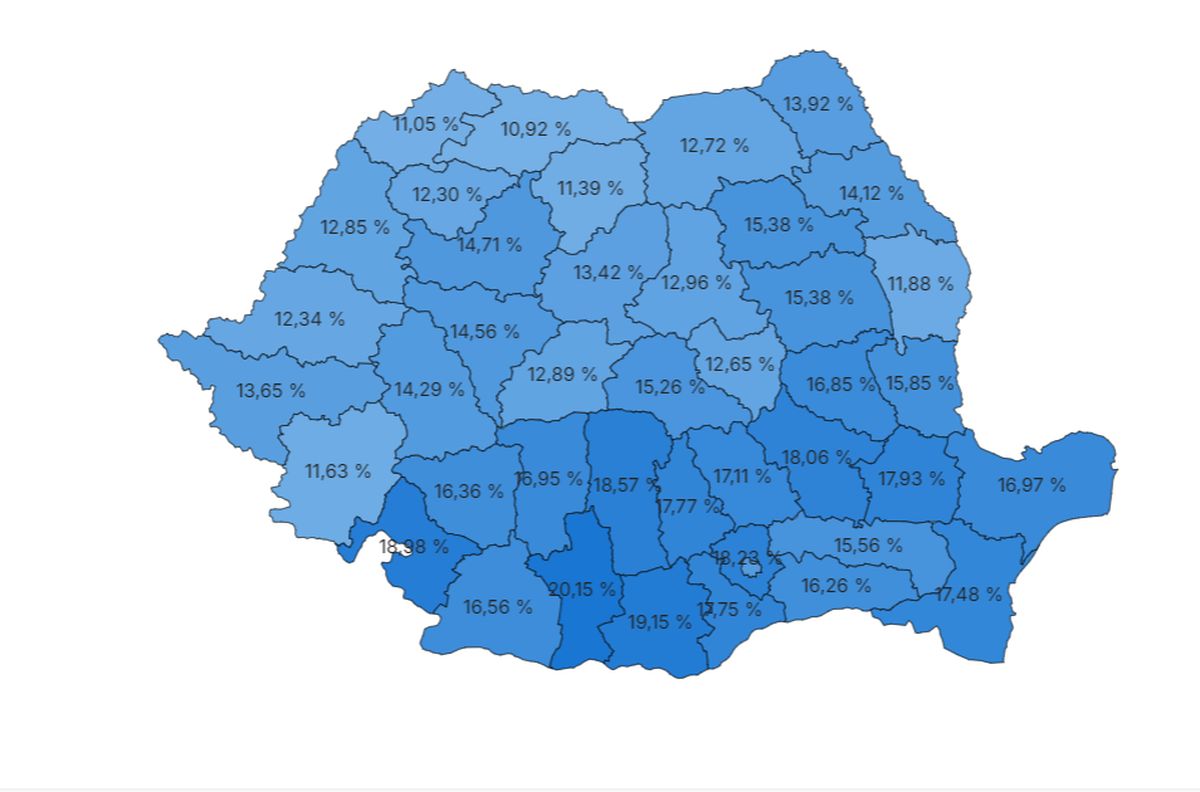 Harta prezenței la vot pe județe, la ora 12:00, potrivit AEP