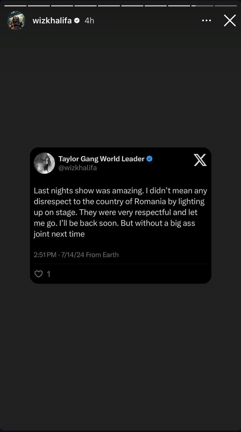 După câteva ore bune de când a fost luat pe sus de autorități și dus la secție, Wiz Khalifa a avut o primă reacție pe internet.