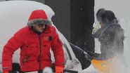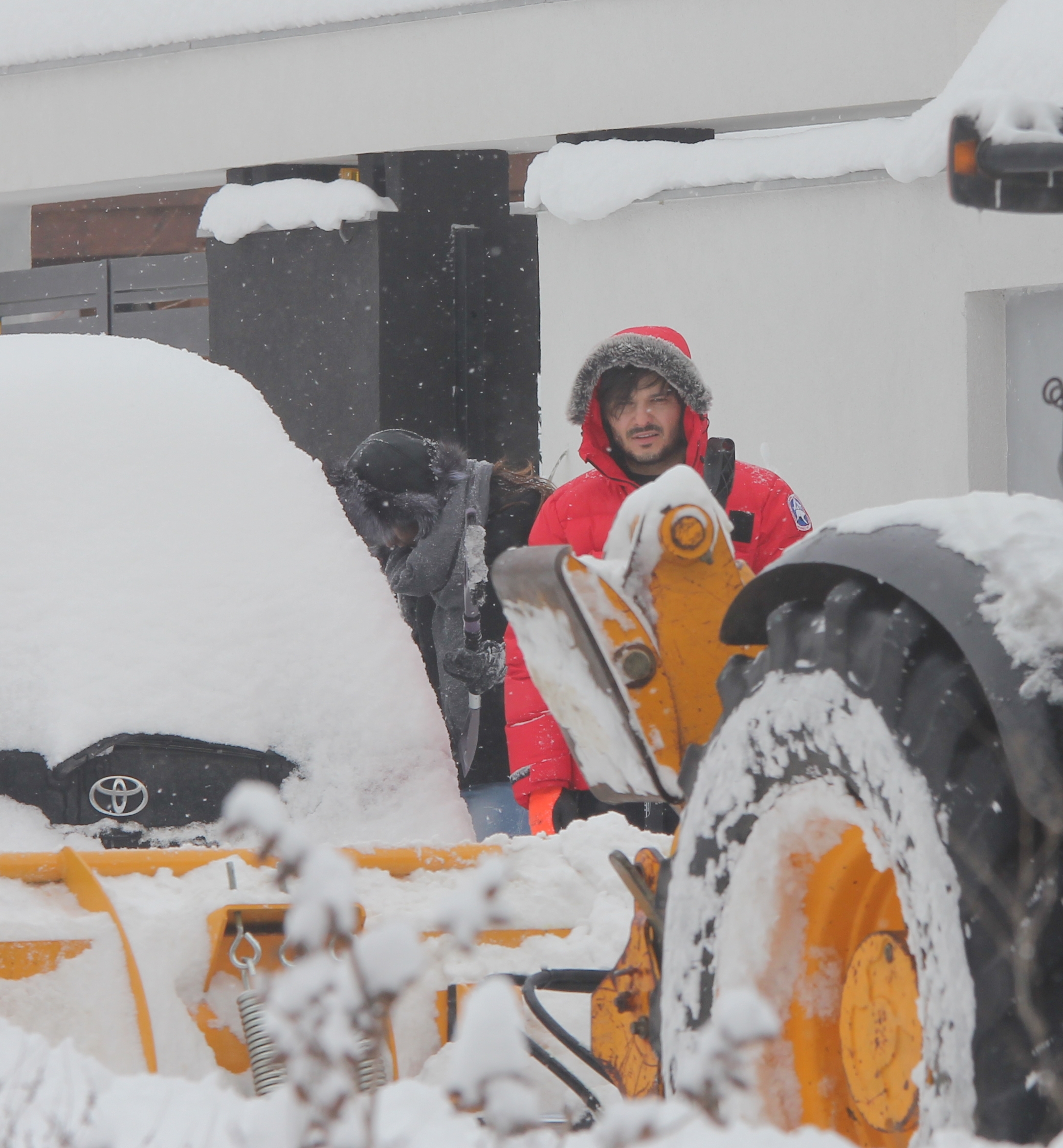 Vedeta de televiziune a iesit sa se lupte cu nametii din fata vilei in care s-a mutat de Craciun, ajutat de domnisoara misterioasa, care l-a incurajat cu cateva saruturi patimase
