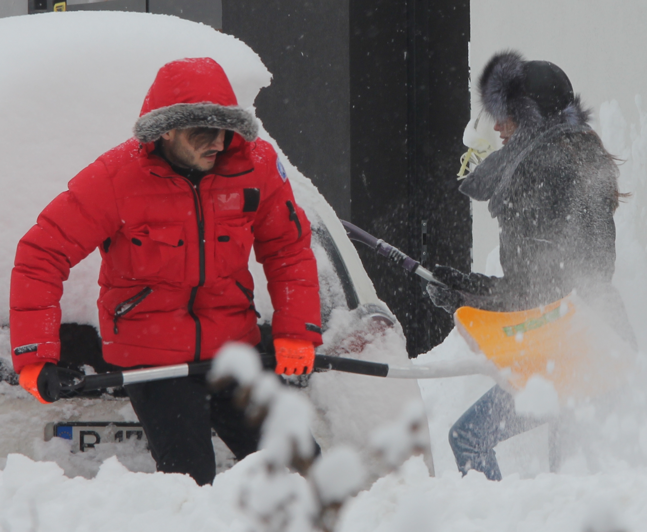 Ieri pe la pranz, dupa o seara obositoare, Liviu a iesit in fata noii lui resedinte, sa inlature omatul care ii acoperise complet masina.