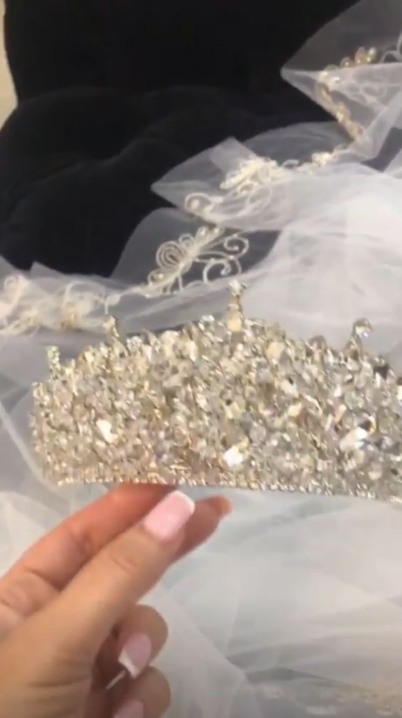 Au apărut pe Instagram primele poze cu Brigitte cu voalul pe cap. Brigitte a ales și o coroană impresionantă pentru cununia religioasă cu Pastramă.