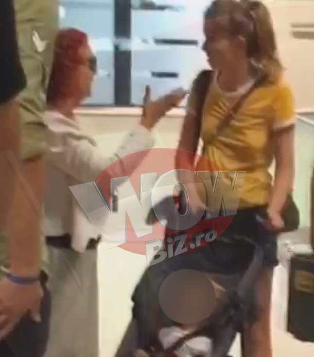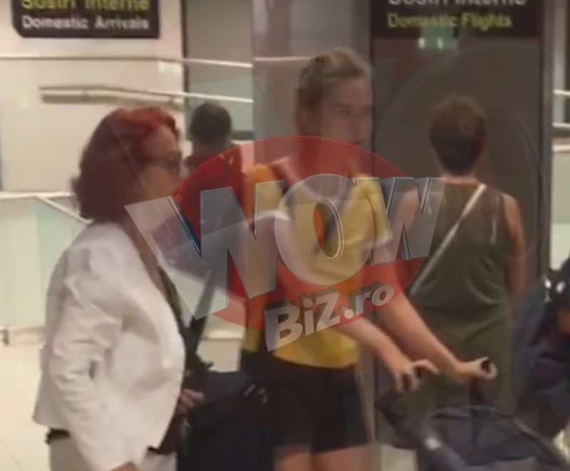 La aterizare, pe aeroportul din Otopeni, Iulia si-a luat fiul in brate si a rugat un barbat sa-I aduca repede caruciorul micutului.