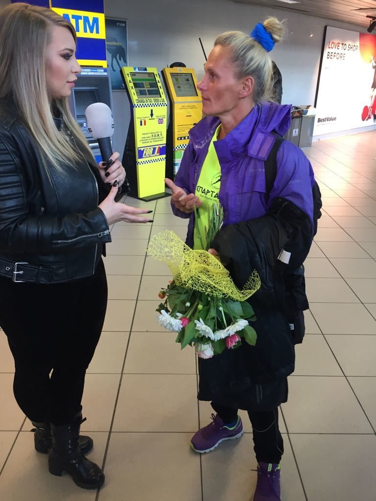 Razboinica a fost asteptata in aeroport de catre o fata pe care o antreneaza. In momentul in care s-au revazut, Mariana si Alexandra Popescu s-au imbratisat si au plans.