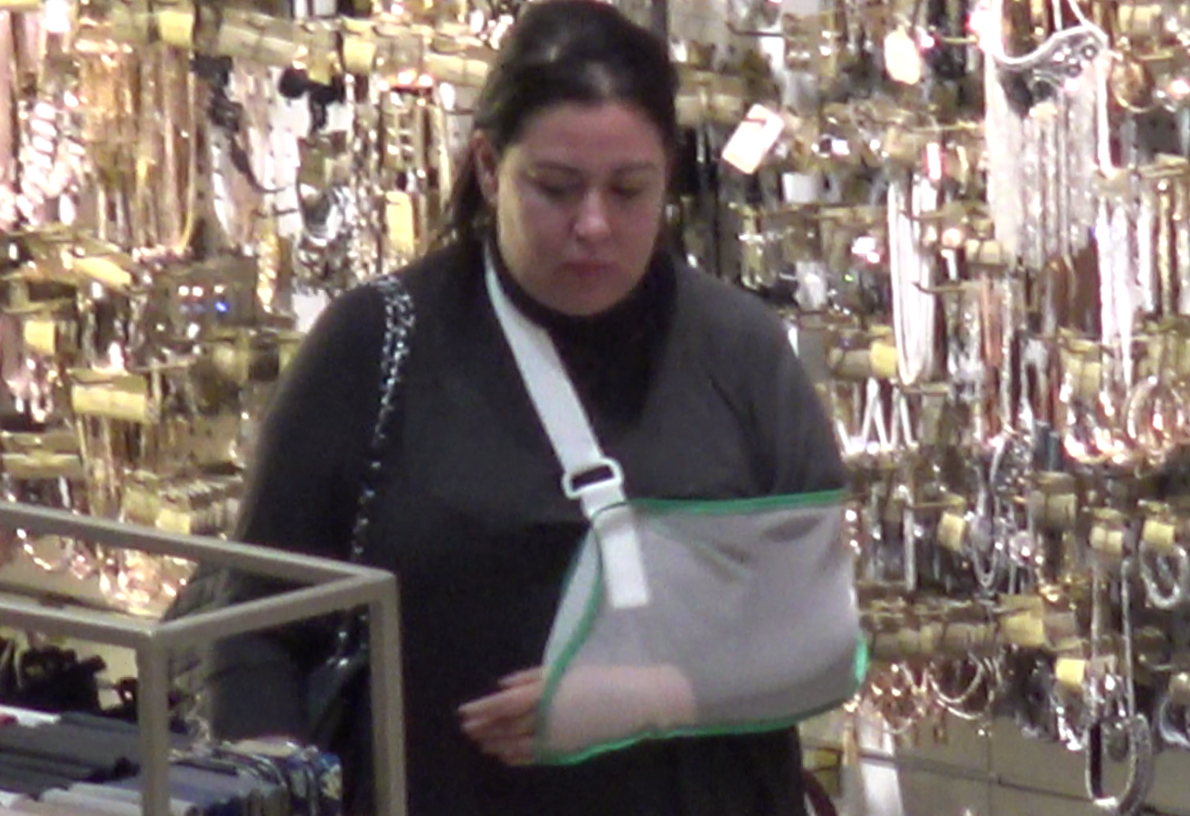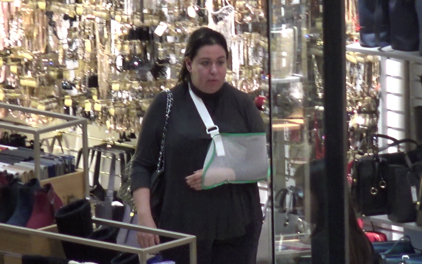 Primele imagini cu Oana Roman, dupa ce a cazut si si-a luxat mana! A iesit la cumparaturi cu familia, desi are mana stanga imobilizata VIDEO EXCLUSIV