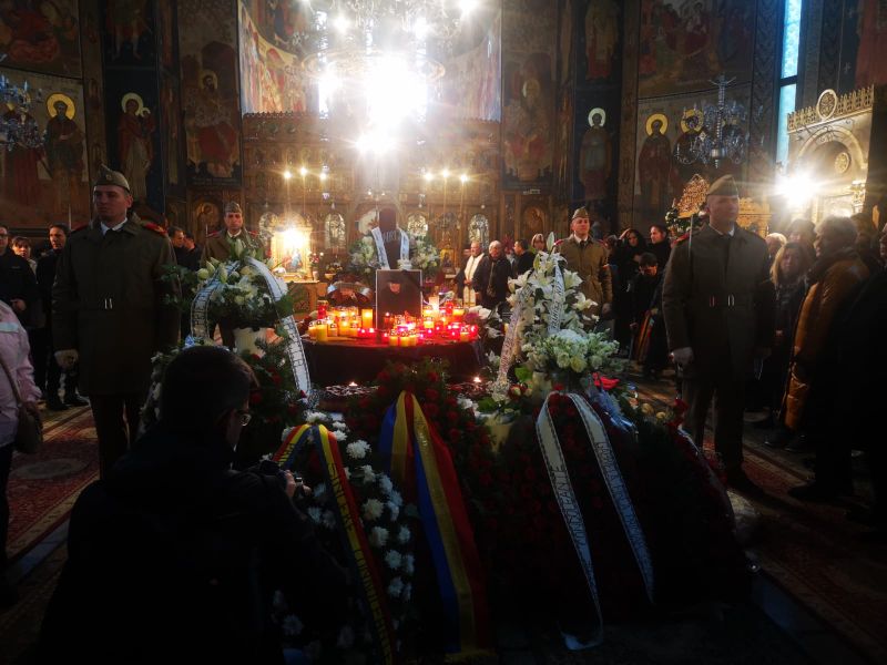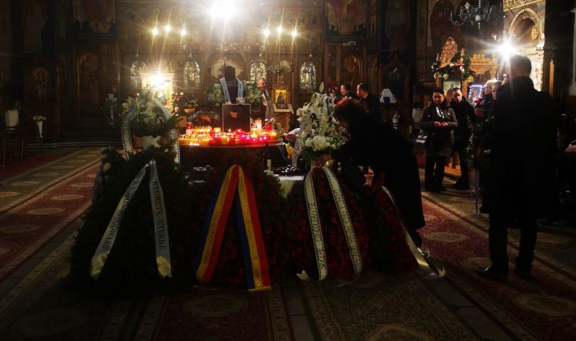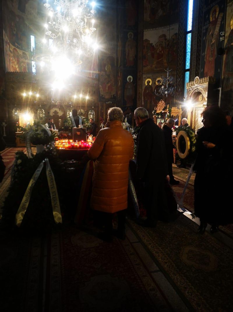 Update 13.00 Mihai Constantinescu a fost decorat post mortem cu Ordinul Național „Pentru Merit” în grad de Cavaler. Garda de onoare a stat lângă sicriul acoperit cu drapel și plin de flori tot timpul slujbei. Au fost momente emoționante, la care Simona, soția lui Mihai Constantinescu, a asistat împietrită de durere.