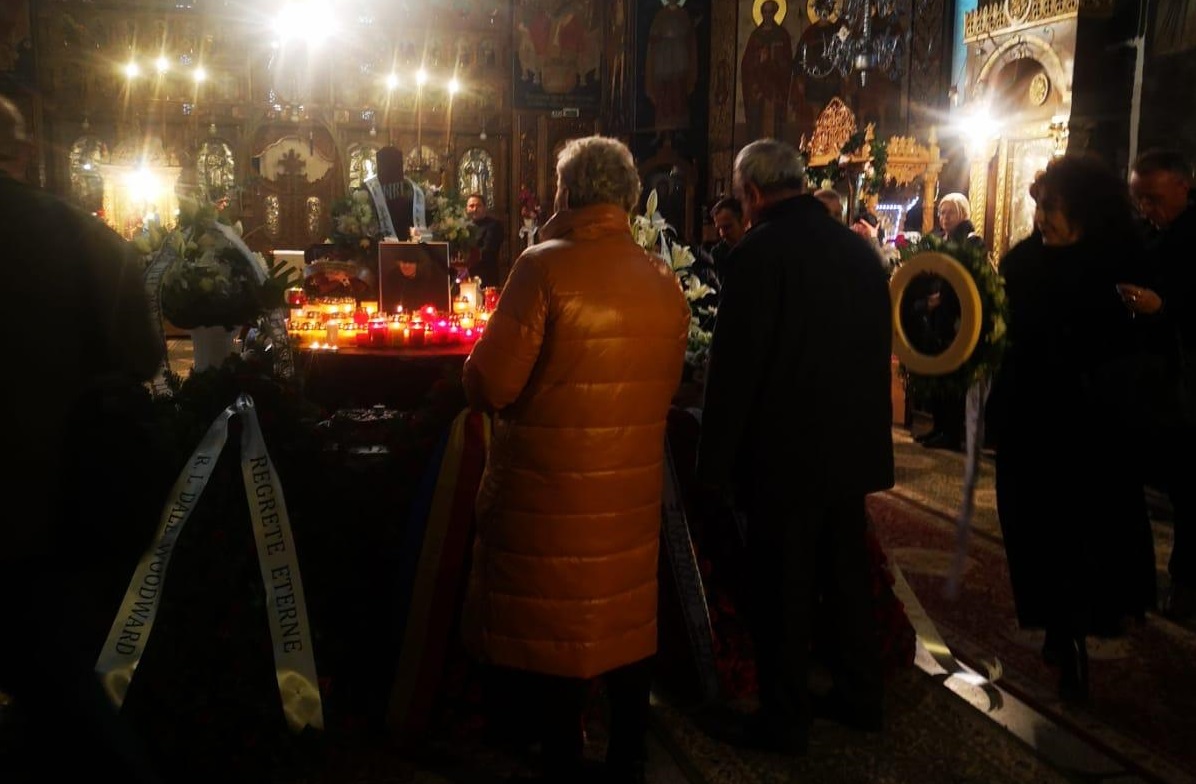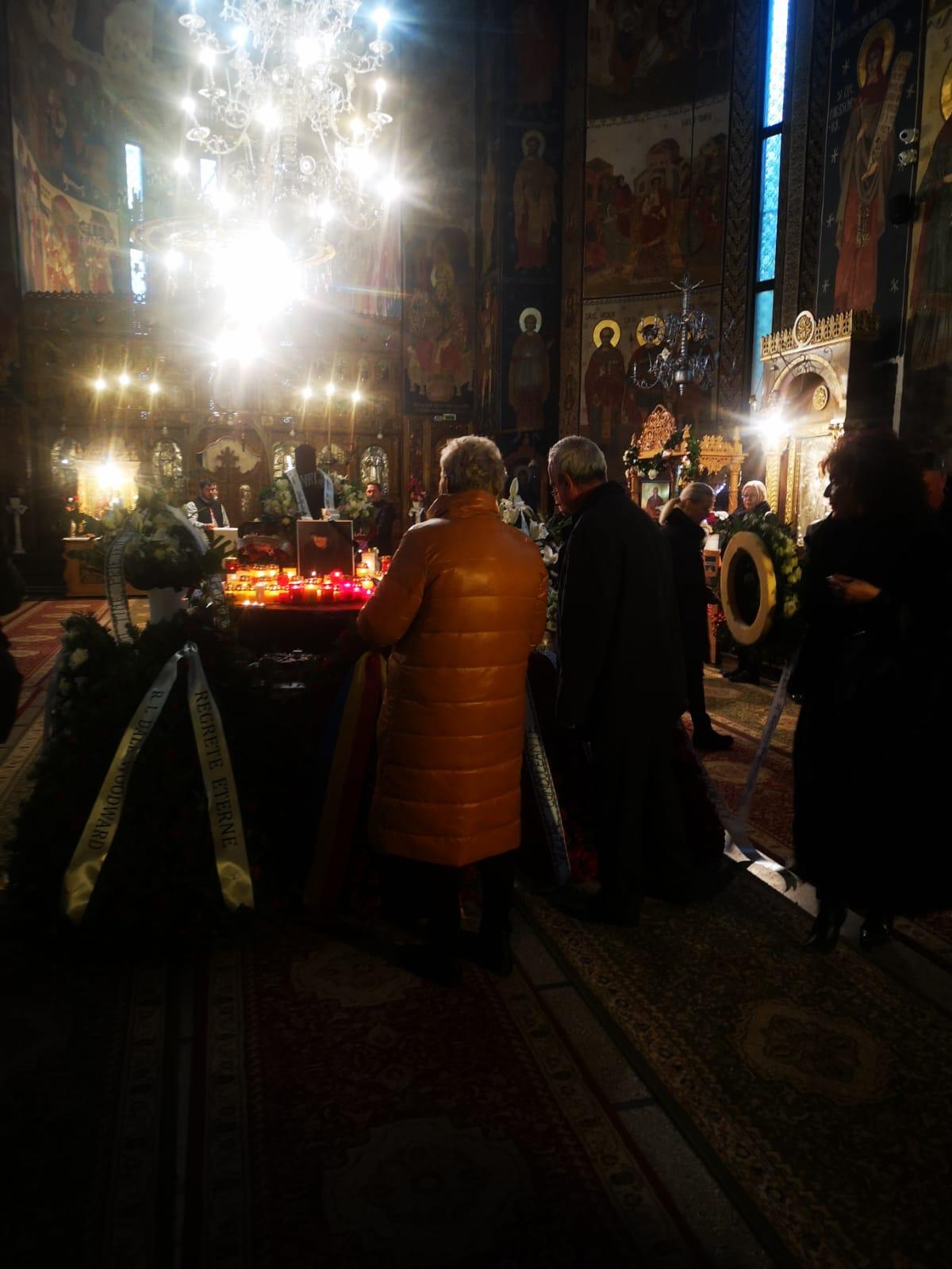 În biserică, nedezlipită de sicriul cu trupul artistul se află soția acestuia, Simona Secrier.