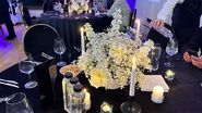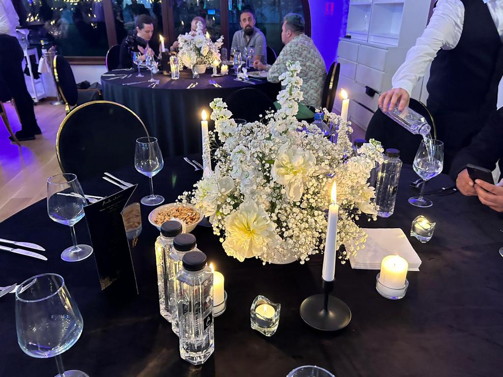 Oragnizarea fericitului eveniment a fost pusă la punct de către cei doi parteneri în cel mai mic detaliu, începând de la amenajarea sălii, până la meniu, care a fost unul de lux, invitații degustând din preparate precum smochină cu brânză de capră și fulgi de migdală, clătită cu somon afumat sau file de vițel cu sos de ton, acesta fiind doar o mică parte din aperitiv.