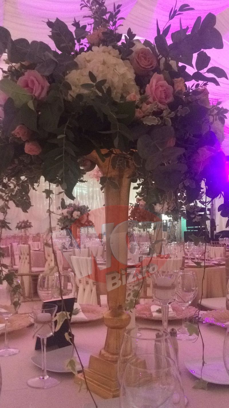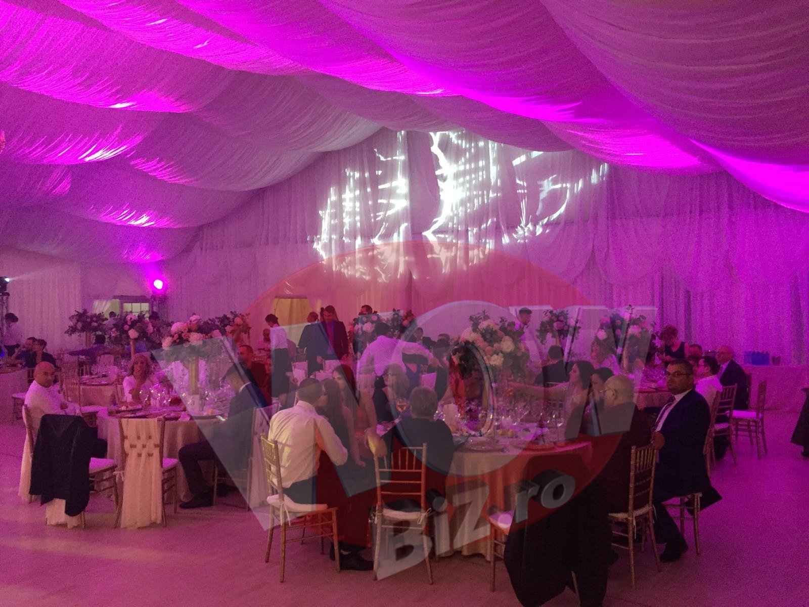 What’s Up si Simina isi traiesc visul chiar in aceste momente. Evenimentul pe care l-au organizat cu atata grija pare a fi unul ca la carte. Locatia de vis, amenajata impecabil e plina de aranjamente de flori scumpe, puse in suporturi aurii. Fetele de masa si scaunele au fost albe, insa in luminile colorate au dat un aer elegant incaperii.