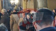 Imbracati sobru, Printesa Lia in haine cernite, iar Printul Paul intr-un costum inchis la culare si un palton de culoare crem, cei doi au intrat in Manastirea Cernica si au inaintat spre altar.