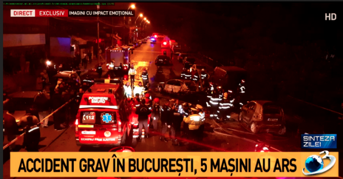Luni noaptea, un accident teribil s-a intamplat in zona Baicului din Capitala! O femeie si-a pierdut viata, alta, de 18 ani, a fost ranita, iar acum se zbate intre viata si moarte, si sase autoturisme au fost avariate! Situatia a fost atat de grava, incat, in urma impactului puternic, trei autoturisme au fost cuprinse de flacari si distruse total!