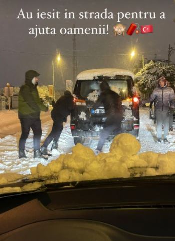 „Râdem, glumi, dar nu am trăt în viața mea ce am trăit în seara aceasta de când mă aflu în Istanbul, respectiv de un an și jumătate. A nins, după 12 ani am înțeles și eu de aici, a nins, dar ceva rău. S-au blocat toate drumurile, circulația… Eu de la studio și până acasă merg așa pe un drum, prin pădure. (…) M-am împotmolit fix în fața blocului. E aici o nebunie totală, în sensul în care oamenii ies pe stradă ca să ajute alți oameni. Până acasă m-am blocat de trei ori și am fost ajutată de fiecare dată, am mers și pe contra sens, am și alunecat.”, a declarat Cristina Mihaela Dorobanțu pe pagina personală de Instagram.