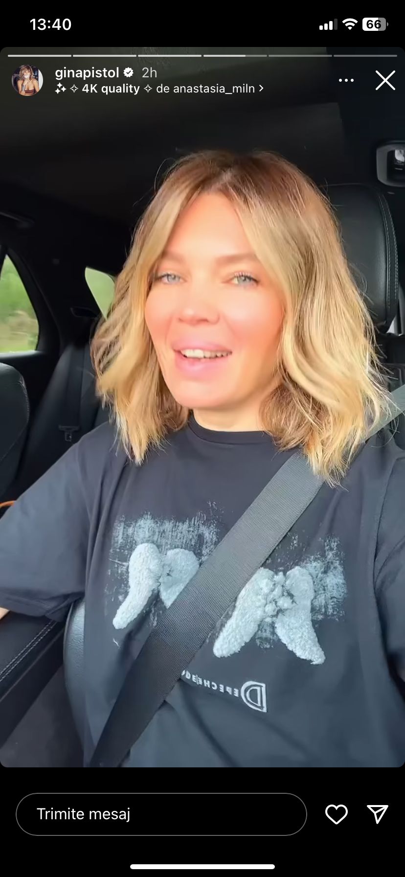 „Am plecat de la antrenamentul de astăzi și sunt foarte mândră! Îmi este foarte greu să plec de casă. De multe ori nu am timp, îmi și găsesc singură scuze să nu ajung la sală, apoi când ajung la sală, îmi este foarte greu în timpul antrenamentului, îmi vine să strig și să înjur și să renunț. Dar după ce termin antrenamentul, am așa o stare de bine, o oboseală placută. Și sunt mândră că am reușit. Am reușit să merg la sală!(…) Este un proces, durează un pic”, a povestit Gina Pistol pe internet.