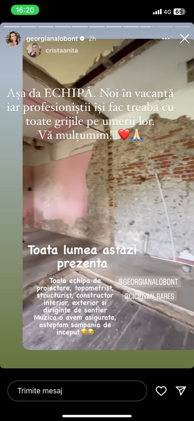 „Așa da echipă! Noi în vacanță, iar profesioniștii își fac treaba cu toate grijile pe umerii lor. Vă mulțumim!”, a fost mesajul pe care Georgiana Lobonț l-a postat în mediul online.