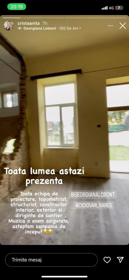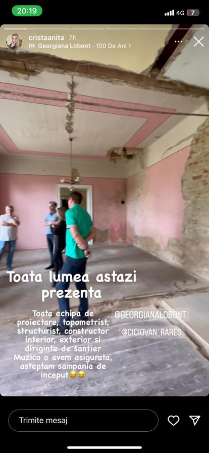 Georgiana Lobonț are un mare vis, care este pe cale să devină realitate! În curând se va muta în noua ei casă, care va fi amenajată și decorată după bunul plac. Construcțiile sunt în toi, însă artista se poate bucura de ea, pentru moment, doar privind imaginile pe telefonul mobil, cât timp muncitorii se ocupă de construcția clădirii. Cu doar câteva momente în urmă, cântăreața le-a arătat fanilor ei în ce stadiu se află casa visurilor sale, după ce în urmă cu circa o lună le-a arătat acestora care va fi rezultatul final.