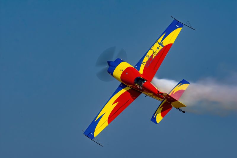 BIAS prezintă o varietate de demonstrații aeriene, inclusiv acrobații aeriene impresionante, realizate de piloți experimentați.