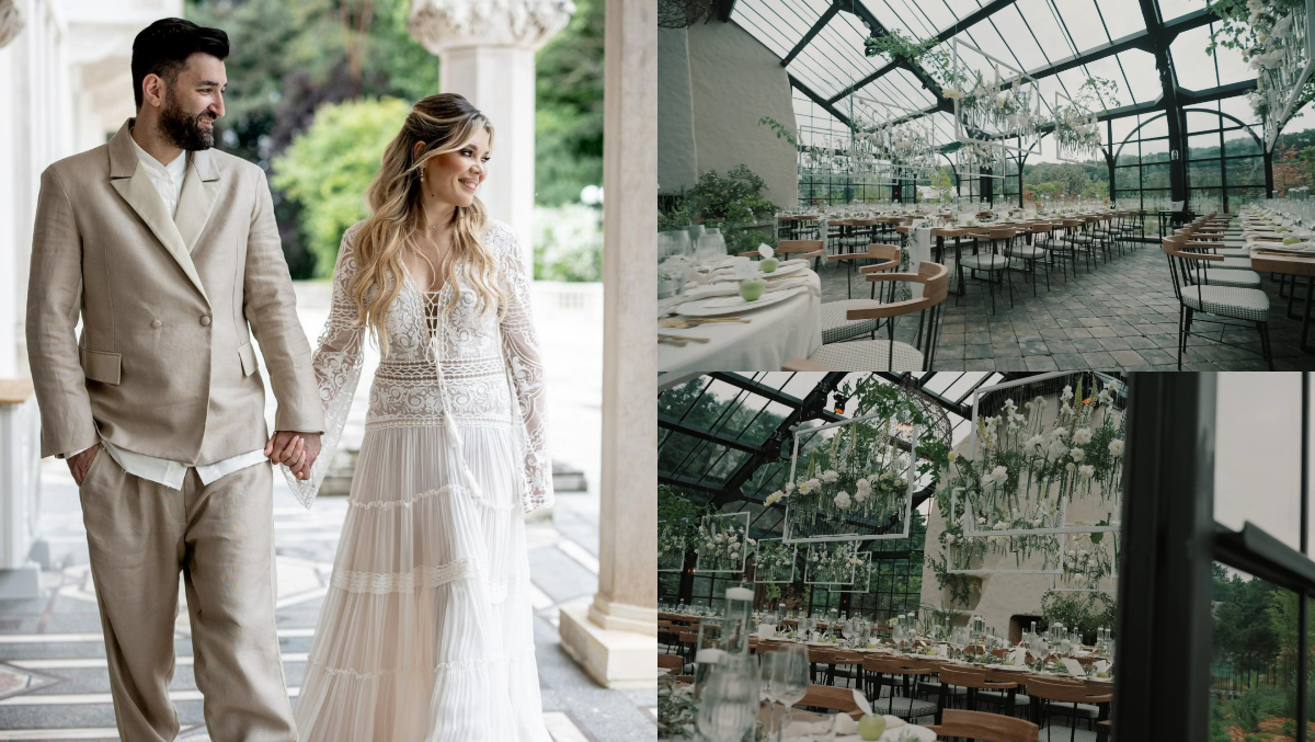 După cununia civilă și cununia religioasă care au avut loc discret, în prezența familiilor și a celor mai apropiați prieteni, la Palatul Snagov, cei doi miri își așteaptă invitații la restaurant, o seră aflată la liziera Pădurii Snagov, pentru o petrecere în natură, cu muzică live, dans, flori albe, meniuri pentru toate gusturile și multă veselie.
