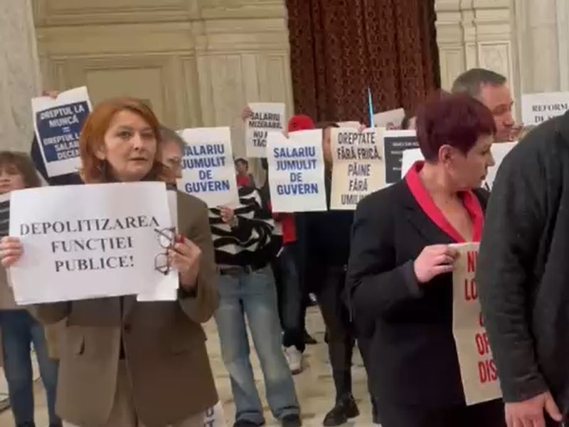 „Sindicatele din Parlamentul României au ieșit de nou la un protest spontan aici, pe holul Palatului Parlamentului, deoarece data trecută nu a stat niciun factor de decizie de vorbă cu noi pentru revendicările noastre. Deci, după o reformă începută și finalizată, într-un final cu mai puțin personal specializat și salarii diminuate începând de la 1 iulie, ne așteptăm la o repunere în drepturi a angajaților noștri, deoarece volumul de muncă a crescut, personalul ne pleacă, iar noi n-am găsit soluții decât să acceptăm ce spune Guvernul – că de la 1 ianuarie ne ia norma de hrană. Prin urmare, astăzi ne-am adunat aici să spunem un vot de blam domnului prim-ministru Bolojan și întregului Guvern, în frunte cu ministrul Muncii, care a neglijat solicitările noastre până în present”, a declarat lidera sindicaliștilor, Angela Ghenciu, președintele Sindicatului Salariaților din Camera Deputaților, conform Observator.