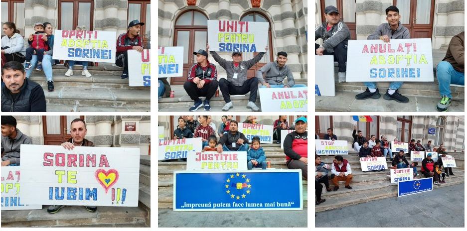 Oamenii au ieșit în stradă în București, Bacău, Târgu Jiu sau Baia de Aramă, localitate din care a fost luată micuța. La Bacău, protestul a fost organizat de Alianța pentru Unitatea Rromilor și a avut loc pe treptele Prefecturii Bacău. La Baia de Aramă s-au strigat sloganuri precum: ”Anulați dopția, că Sorina nu vă vrea”, ”Sorina a fost furatp, nicidecum abandonată”, ”Noi suntem uniți, nu suntem plătiți”, ”Sorina, te iubim”.